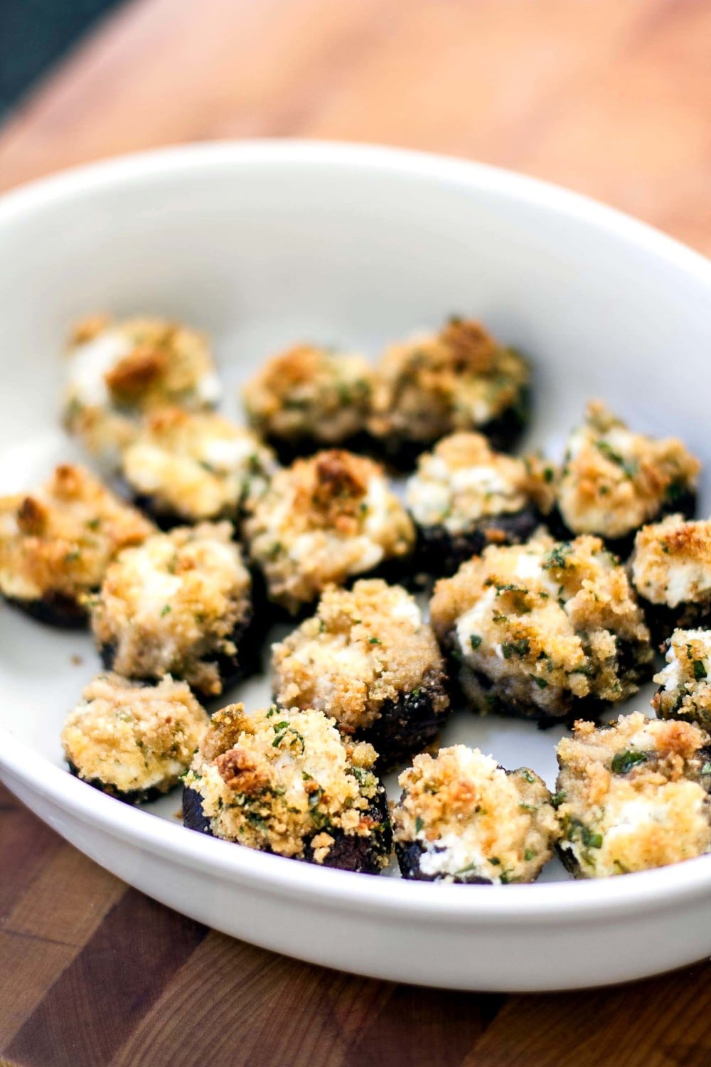 Low maintenance and totally delicious, these pop-in-your-mouth goat cheese stuffed mushrooms are always a favorite appetizer.