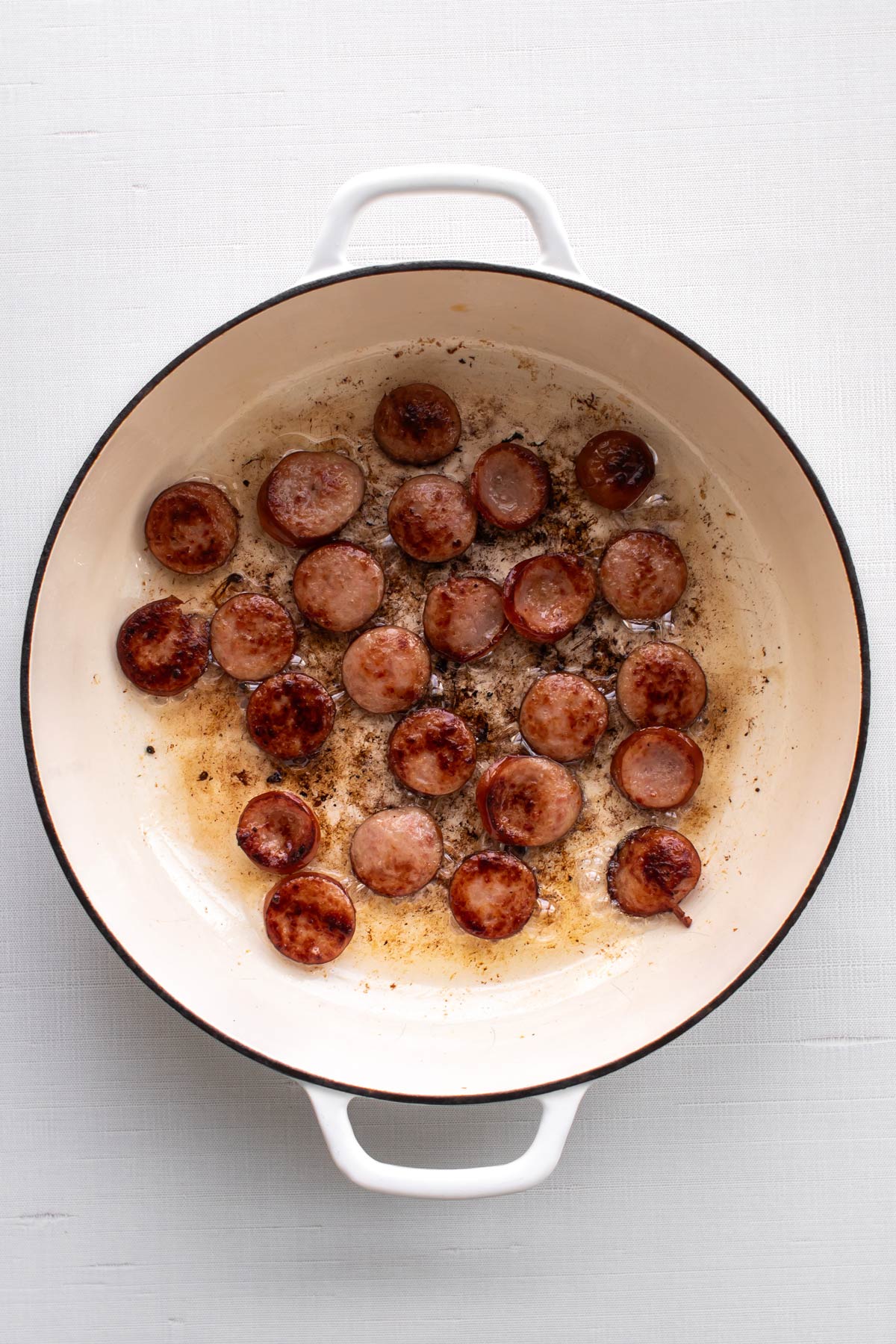 - Brown the kielbasa well โ thatโs where a lot of flavor comes from.