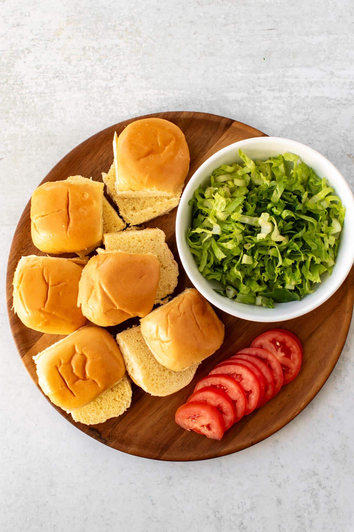 - Brioche slider rolls: Soft, buttery, and just the right size for mini sandwiches. If you can’t find them (check your grocery store’s bakery section), Hawaiian rolls work great, too.