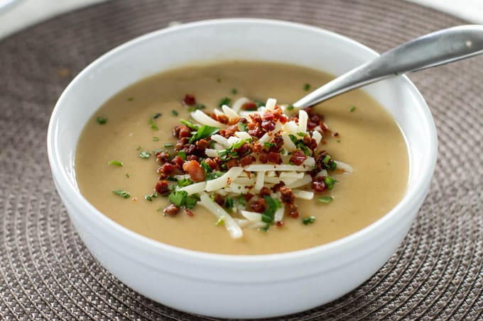 - Once the potatoes are tender, puree the soup until it’s smooth and creamy. An immersion blender (or stick blender) is easiest, but ladling the soup into a stand blender works well, too. For the latter, just be sure to let the soup cool before giving it a whirr otherwise it might cause a mess. (see notes)