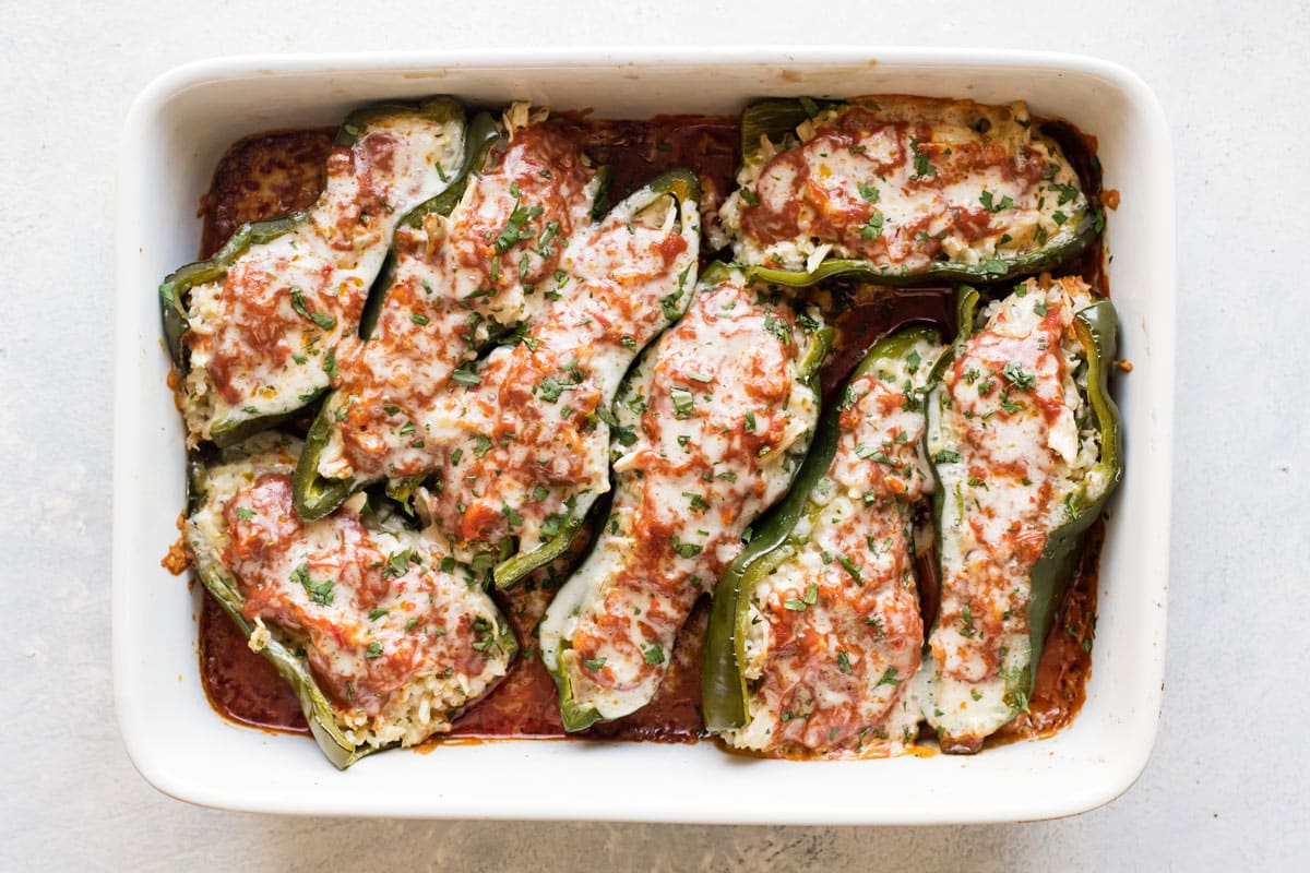 The trick for stuffed peppers is pre-cooking them so you don’t have to bake them until they’re tender and the stuffing mixture is overcooked. When it’s all said and done, the finished peppers are softened but with a crisp bite. If you want extra soft peppers, I recommend adding three to four more minutes when pre-cooking them.